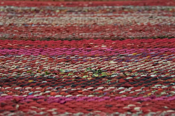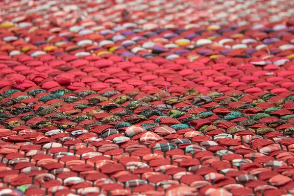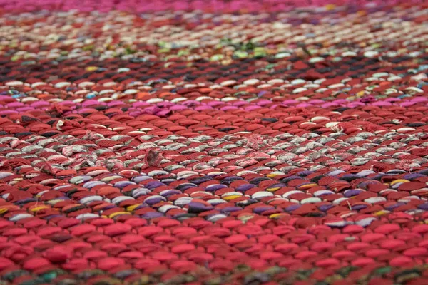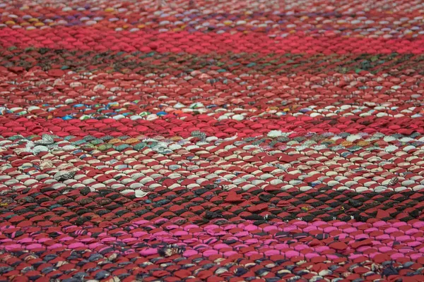 Kangastelgedel kootud toimne kaltsuvaip taaskasutustekstiilidest