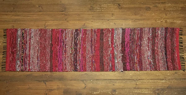Annab su kodule värvi ja maitset! Sai selline kõvemat sorti vaip, see on tingitud sissekootud uuest kirsipunasest laiast paelast. Seega olemuselt neutraalne, aga samas värviline. Nagu loodud maakodusse, kannatab hästi tallamist ja ei näita võimalikku määrdumist hästi välja. Hea pikk ka. Kui vajad oma elamisse üht värvilaiku, aga mitte liiga dramaatilist, siis siin ta on. Ootab sind