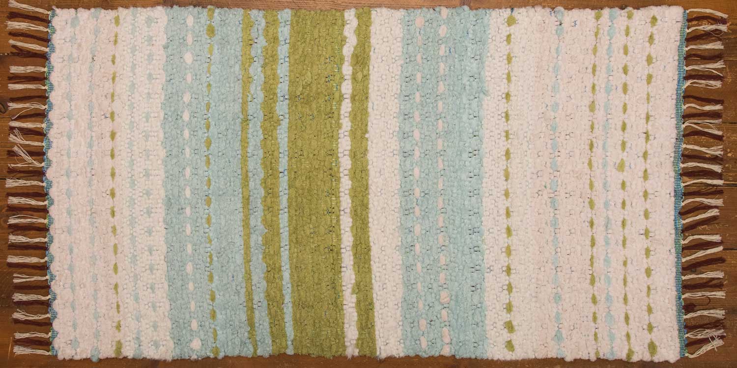 Ülemaailmsetes Facebooki gruppides on täitsa põnev olla. Enamasti voolab elu tavaliselt, jälgid aina maailma kangakudujate maitsete erinevusi ja sarnasusi, aga mõnikord lipsab midagi sulle huvitavat ka sisse. Selle vaiba siduse (kuidas on kangastelgede tallalauad ühendatud niieraamidega) ja kudumise kohta küsis üks naine Wales ist, teda õpetas mees Brasiiliast. Süvenesin ise siis ka. Tulemuseks tuli veidi õhem ja kergem vaip kui oleksin arvanud. Kahevärviline lõim ja tema ilusad träpsud jäävad siin väga pehme koelõnga varju. Aga eks siis sellevõrra olegi vaip pehmem.