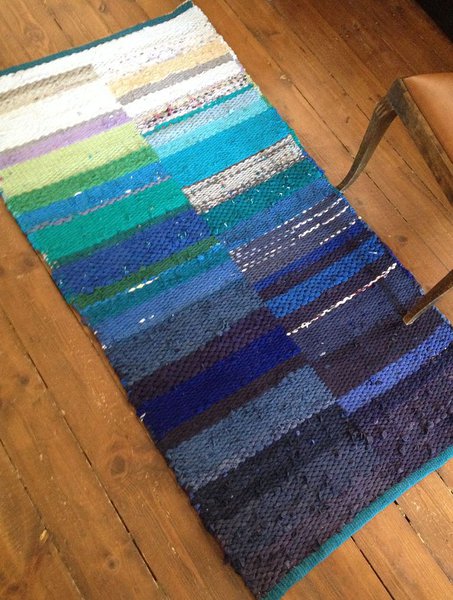 Kangastelgedel kootud kaltsuvaip 86 x 160 cm Kude: täiskoekiri, lõim: viskoos, materjal: 100% taaskasutus