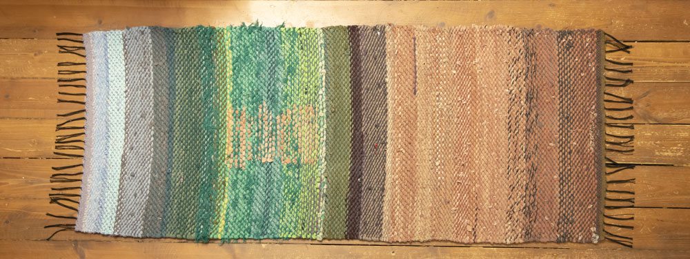 Have you ever thought about swiss soil? This rug is dedicated to very base of swiss country - brownish soil. Look at it closely, it lives! Then you can see green grasslands (little bit to greenish, but I ran out of of right tones of green - so it must be early summerdays shown on rug) and a shady beige rectangle for famous cows. There are high mountains, grey and dark, because they are faraway and at last blue sky. Skies are high over the mountains. I´ve seen numerous times sweet film "Sound of music" and I know it must be vast but as the focal point is soil, you can`t see on this rug very many of it. So, long live Swiss! Treasure your soils!