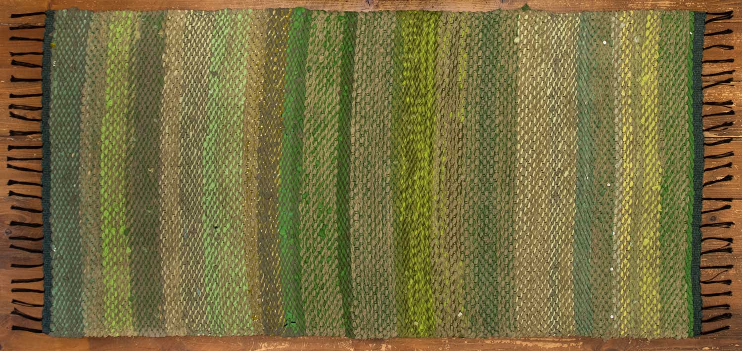 Kangastelgedel kootud tõhus roheline narmastega kaltsuvaip