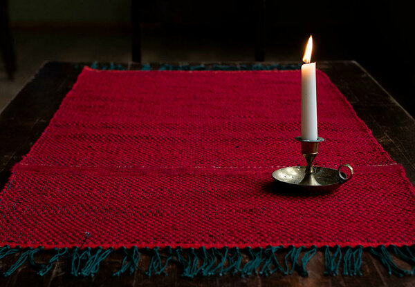 Kootud labases koes, trikotaaziribadest, kullalõngast ja nõuka-aegsest rohelisest "tamsast" (mälestusväärne nõuka-aegne puuvillane lõimematerjal, kasutati ohtralt ja isegi kahju, et nüüd poodidest kadunud)