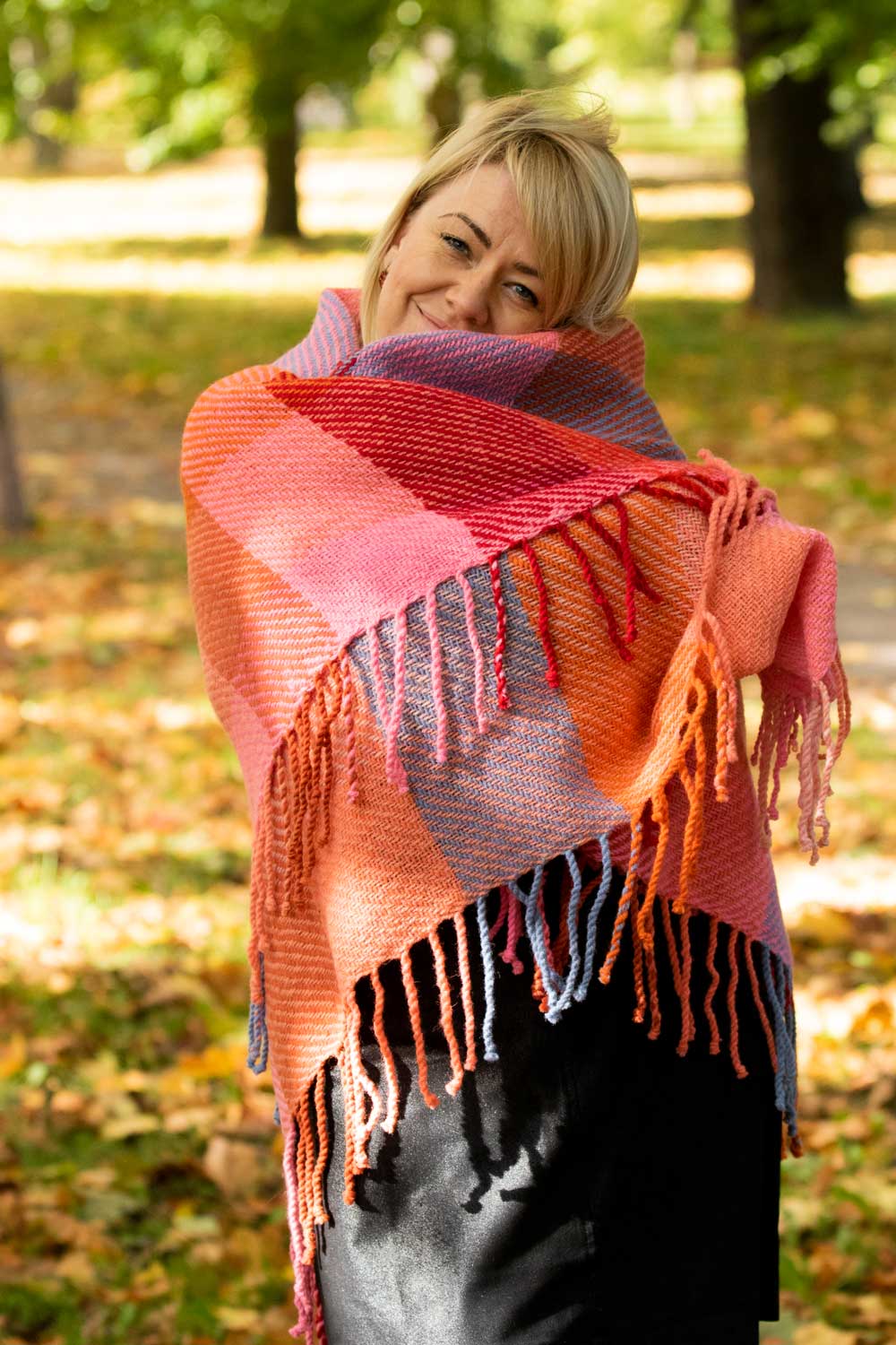 Intensiivne ja soe suurrätik. Klassikaline lambavillast kudum, värvid teevad jumega imet. Kootud soojal suveajal ja see paistab pleedist ka kaugele välja.