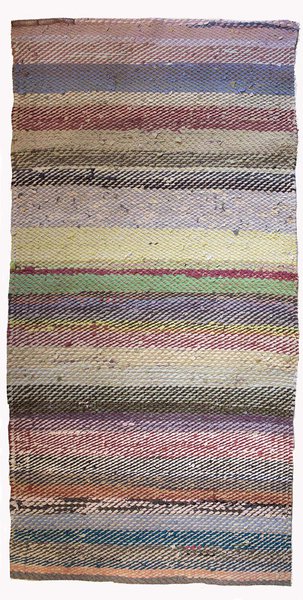 Made from recycled textiles, cotton warp. Twill rug. Thick and serious weaving. No fringe