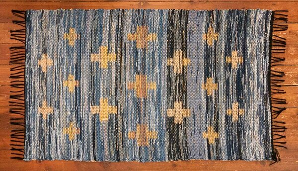 With fringe, both sides of the rug reflect each other. Not too heavy or thick - easy to fluff out.