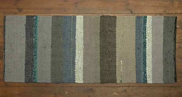I have never been a friend of grey. Yes, I know it is a good canvas for other colours to shine and no colour is ugly and all that. It's just that my hand never selects grey fabric before any other. And now, when I started weaving something completely different, this calm and well tempered rug was born. No it is not boring or too modest.
